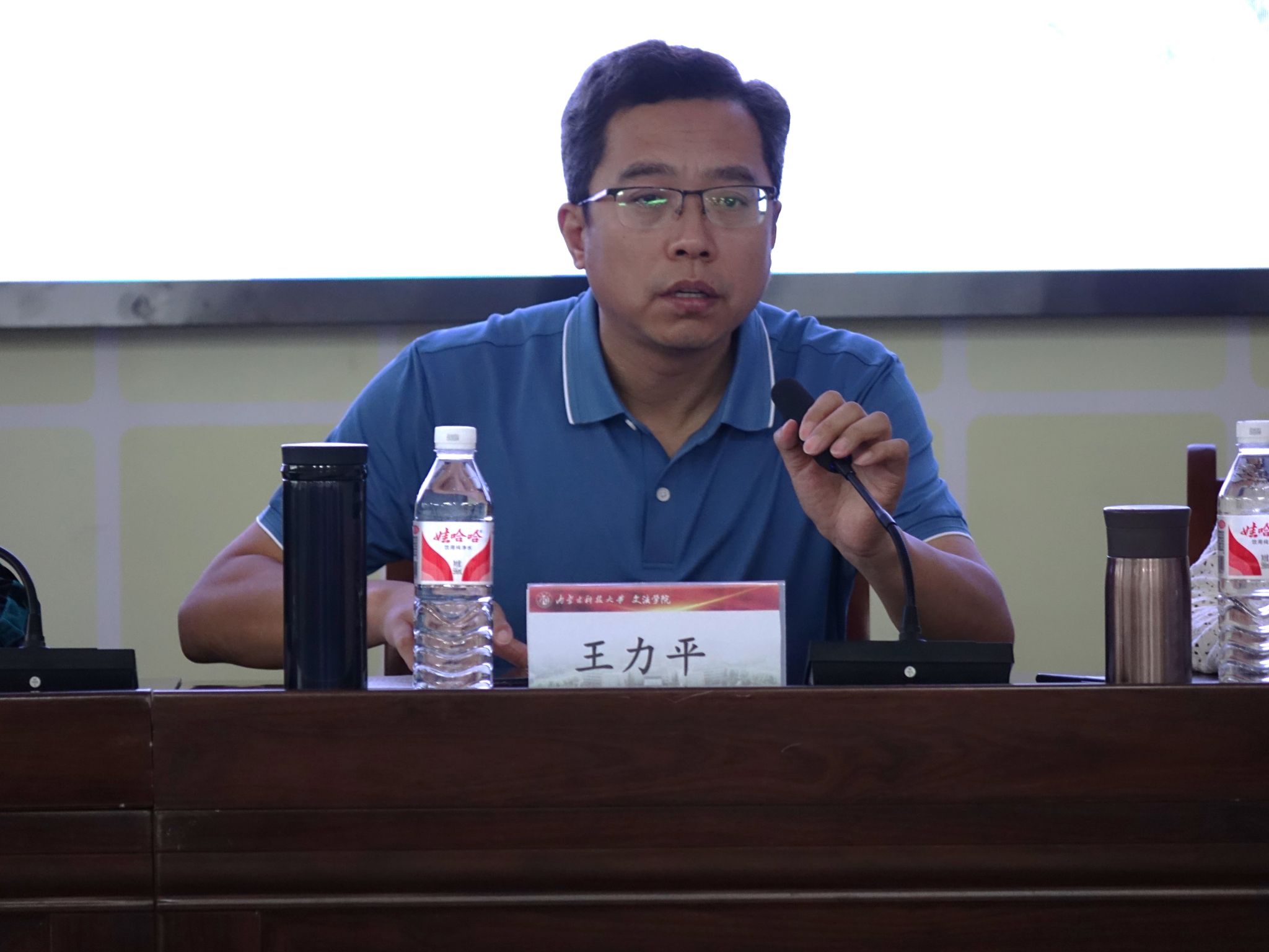 院长王力平、党委副书记薛建春、党委副书记兼副院长孙静、副院长王继霞,各专业系主任和新生班主任参加,孙静主持。