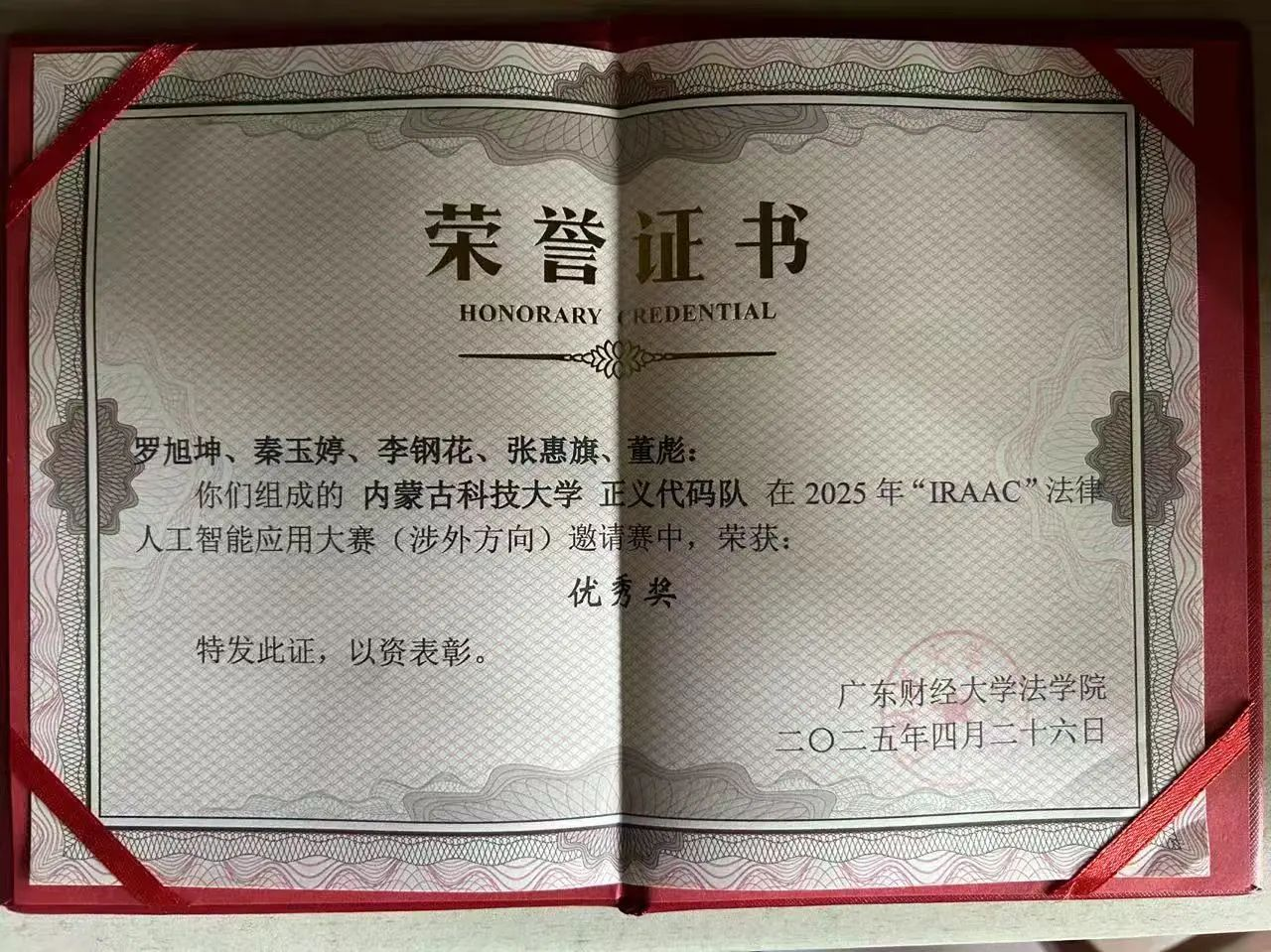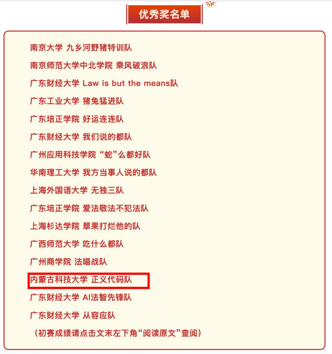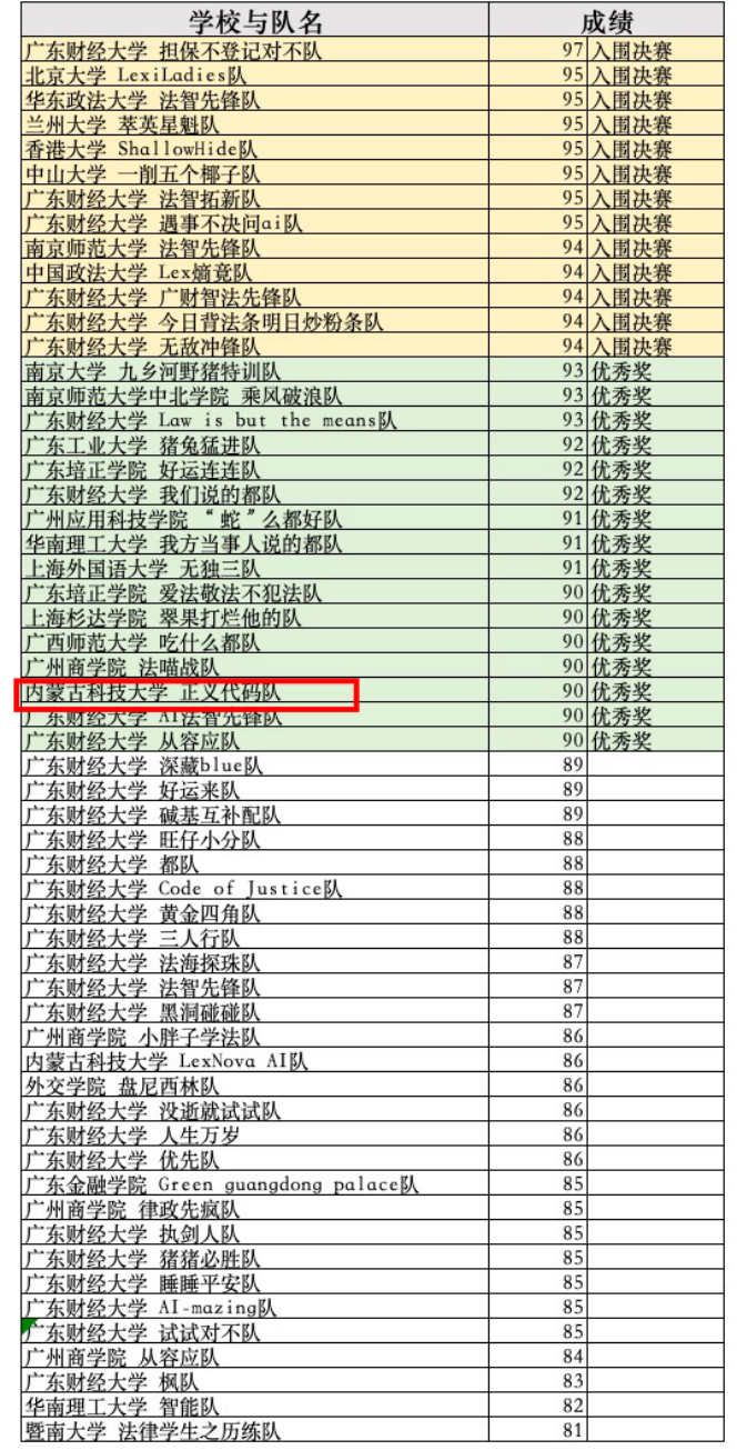 王彦老师指导的 “正义代码队” 凭借扎实的法律功底与AI 的应用能力,在与全国 22 所高校的 56 支参赛队伍的角逐中荣获优秀奖。