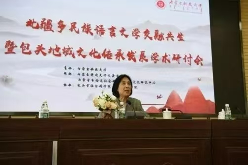 北疆文化研究中心主任康建国研究员以“地域文化视角下的北疆文化研究”为题,分别做了主旨报告。专家们深入探讨了北疆多民族语言文学交融共生的现状、问题和发展方向,传达了学界前沿对铸牢中华民族共同体意识、推进北疆文化建设的深刻思考。主持人王继霞教授也介绍了内蒙古科技大学北疆文化研究团队聚焦中华民族共同体意识与民族文学研究、包头区域文化建设等命题的思考。