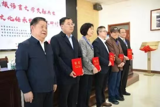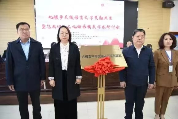 冯志强和朱檬共同为北疆文学与文化传承研究基地、北疆文化进校园研究基地揭牌。冯书记为北疆文学与文化传承研究基地学术顾问颁发聘书。陕西师范大学人文科学高等研究院首席专家李继凯教授赠送了为基地题写的书法作品。