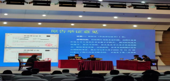 21级法学一班杨红升、21级法学二班李叶茹、21级法学三班杨昆、21级法学三班卢梦晓扮演原告及其诉讼代理人、被告及其诉讼代理人等角色,从法庭纪律、核对被告人身份,到法庭调查、法庭辩论,整个过程井然有序、严谨规范,通过还原庭审现场,用生动形象的模拟庭审传递知识产权法律知识。随后承办法官从证据链的角度深度解析著作权侵权的事实认定和法律适用的争议焦点,努力为群众答疑解惑。