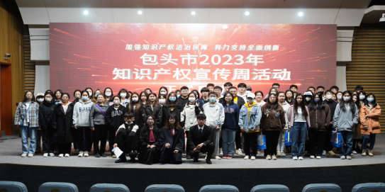 4月22日,由市委宣传部、市中级人民法院、市市场监管局主办,昆区市场监管局等单位承办的2023年包头市知识产权宣传周活动启动仪式在包头市图书馆举办,市政协副主席刘晓东、市中级人民法院院长毕晨出席仪式,市场监督管理、新闻出版版权、法院、公安、海关、司法、律师协会等单位和企业、科研院所有关领导和职工260余人参加活动。