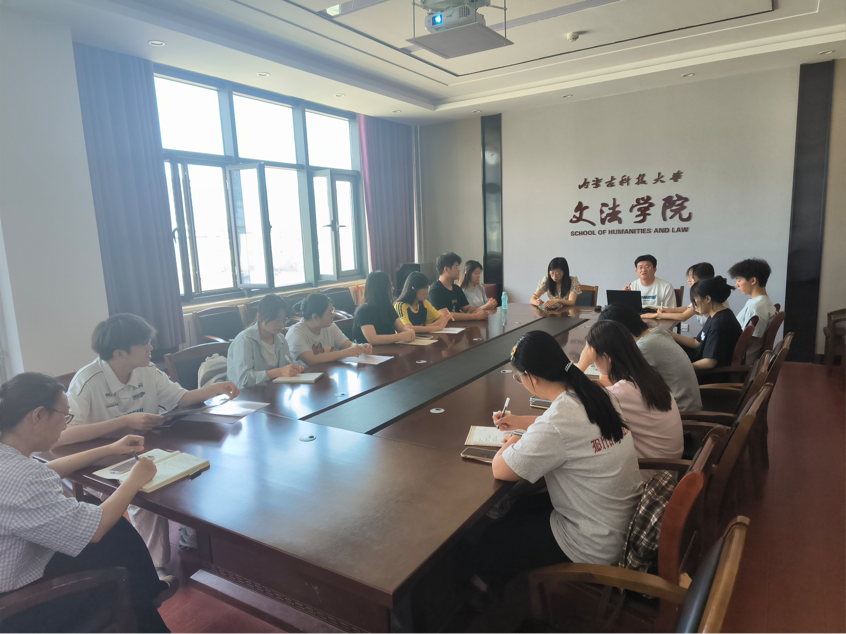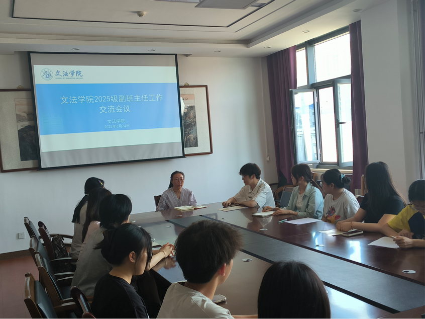 2025级副班主任工作交流会议。会议由学工办主任杜剑锋老师主持,本科生第一、第二党支部书记、学生党员代表参加。