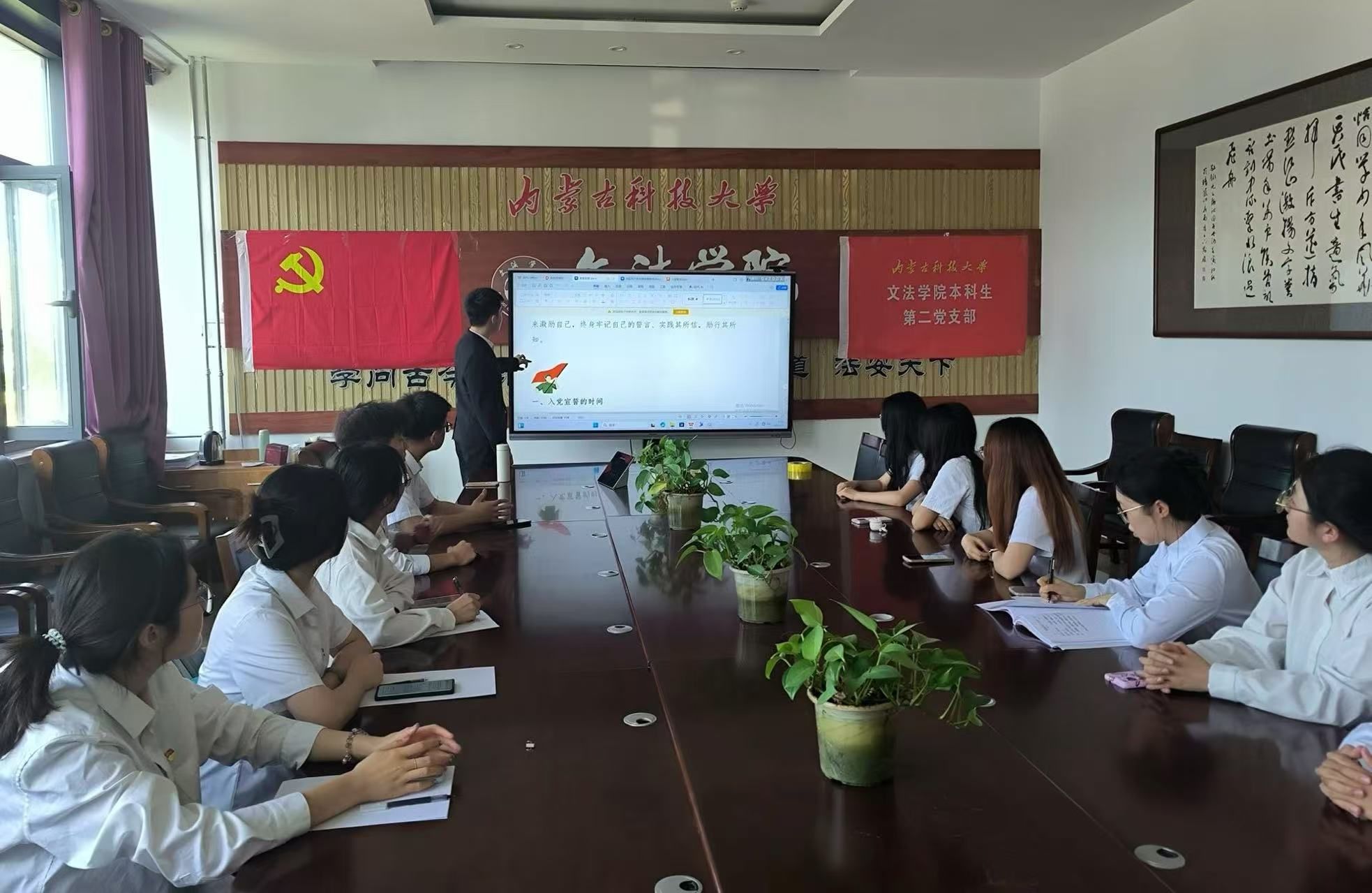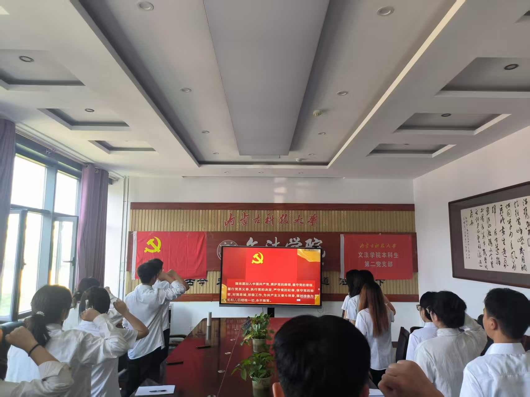 本科生第二党支部在明德楼A307举行2025学年春学期新发展预备党员宣誓大会,同时开展理论学习活动。