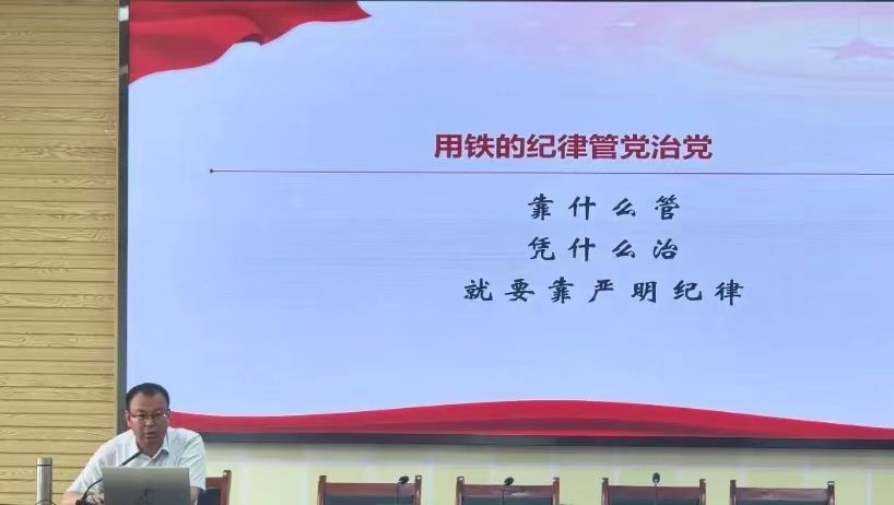 党委书记刘玉明同志亲自授课,支部全体党员积极参与,共同学习、探讨党的纪律建设。