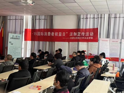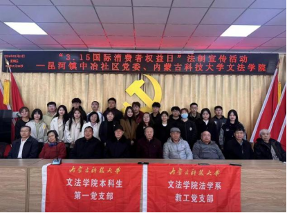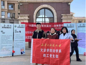 本科生第一党支部、普法维权协会共同走进稀土社区、中冶社区开展消费者权益保护日法制宣传活动。法学系教工党支部书记弓宇峰、党员杨玉英、李小芳参与活动。