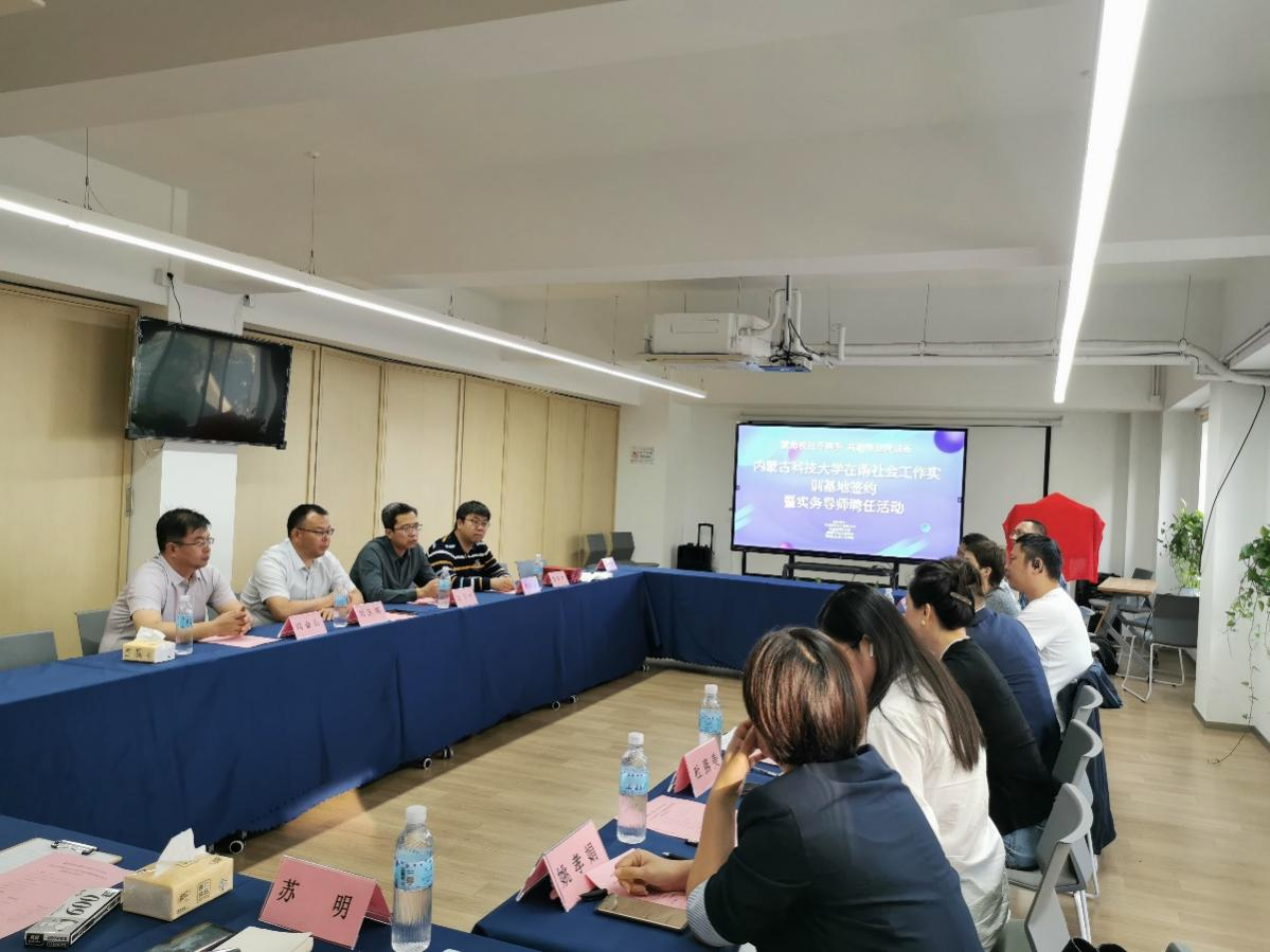 党委书记刘玉明与宁波市社会工作联合会会长江华锋共同为内蒙古科技大学社会工作硕士校外实践教学基地揭牌。