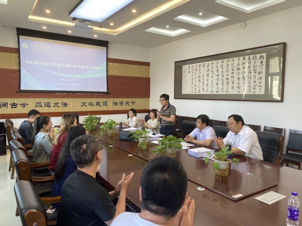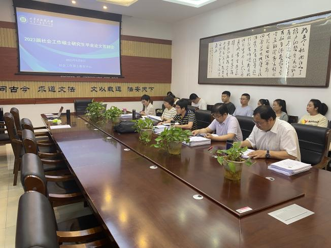 2023年6月8日,社会工作硕士教育中心顺利开展2023届社会工作硕士研究生毕业论文答辩会。本次答辩会共分3组,由校内外的专家学者担任答辩委员,对2023届社会工作专业硕士学位论文进行线下答辩。