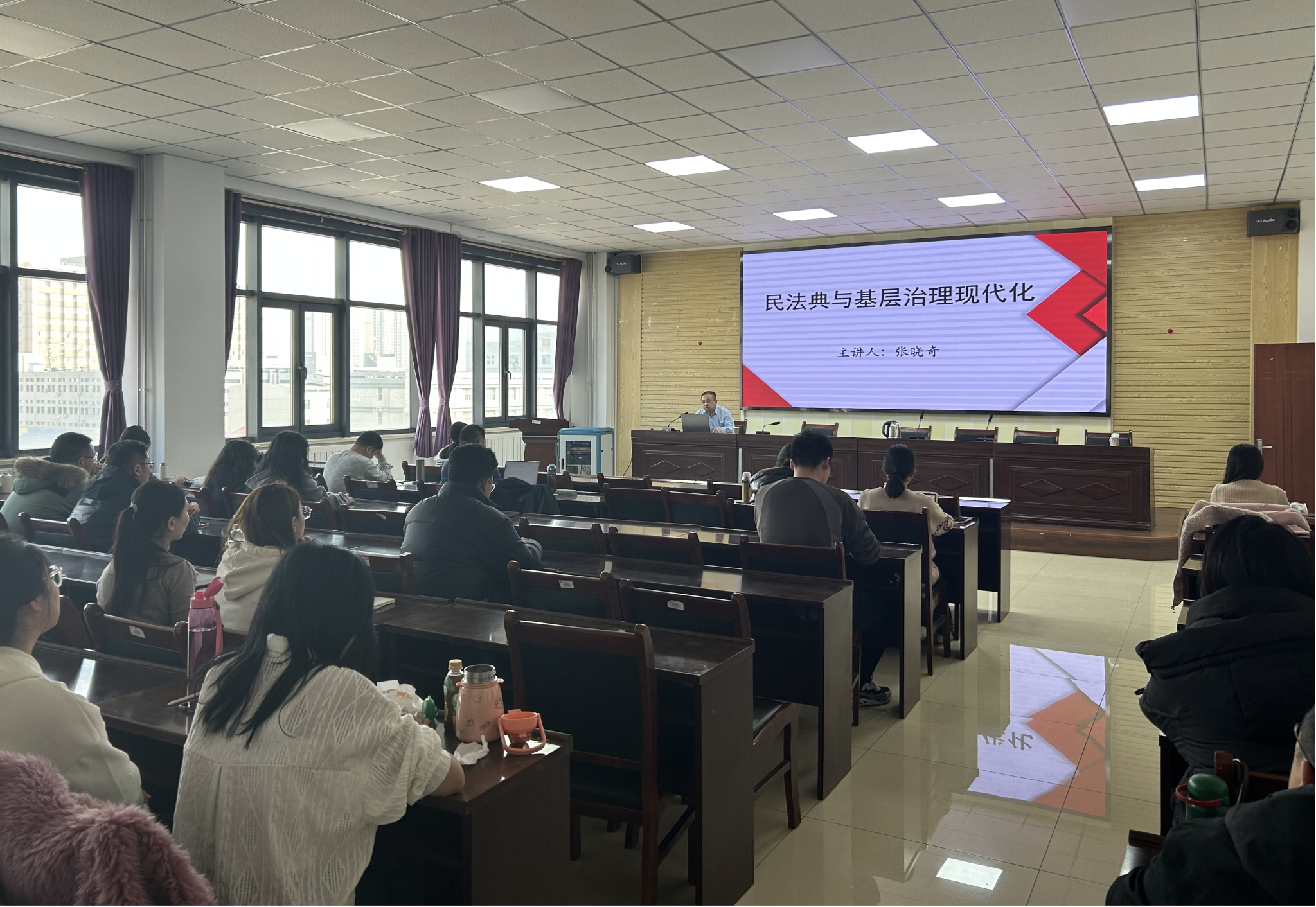 特邀中共包头市委员会党校法学教研室教师张晓奇老师,于明德楼A411开展《民法典》与基层治理创新专题讲座。讲座聚焦民生热点问题,剖析法律条文在化解基层矛盾、保障群众权益中的实际应用。会议由李诚予副教授主持。