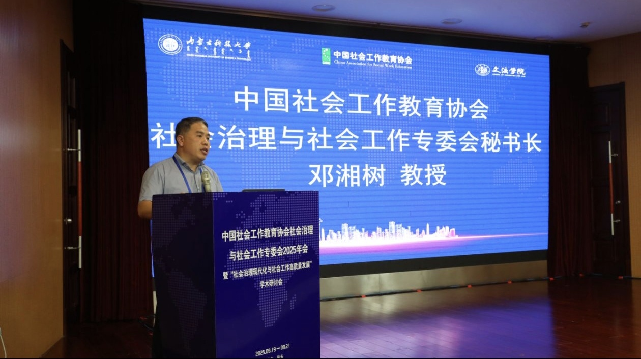 中国社会工作教育协会社会治理与社会工作专委会秘书长、西南财经大学社会发展研究院副书记兼副院长邓湘树教授代表专委会致辞,并感谢内蒙古科技大学的精心组织。